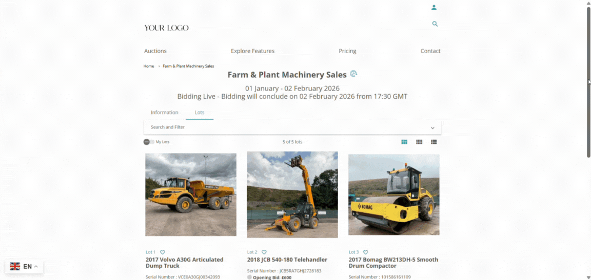 Agricultural & Industrial Auctioneers: Running online auctions for machinery, equipment, vehicles, or industrial assets — and requiring a professional auction platform that reflects your credibility, not a third-party marketplace.